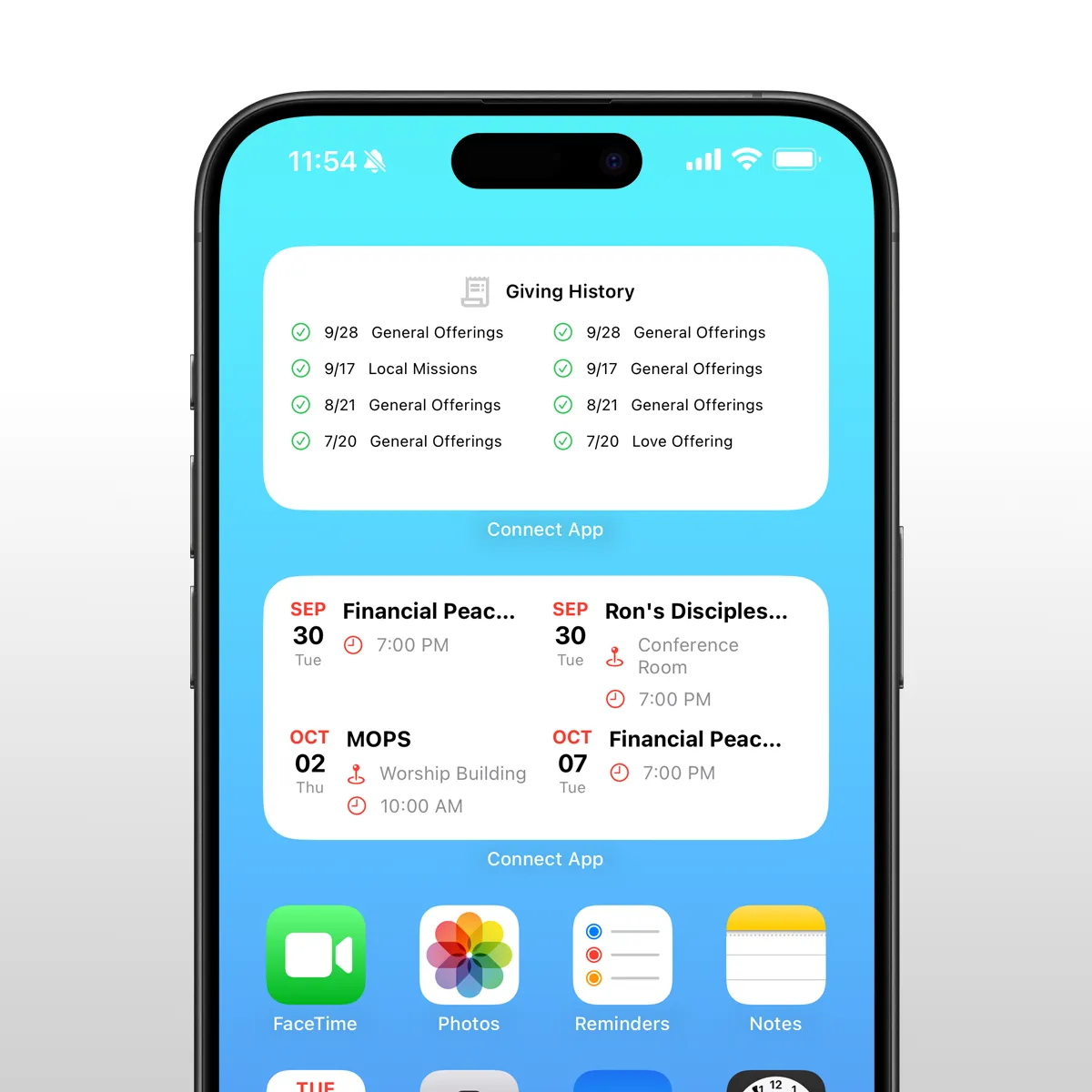Church Connect gives your people the ability to give online, submit forms, and register for events.